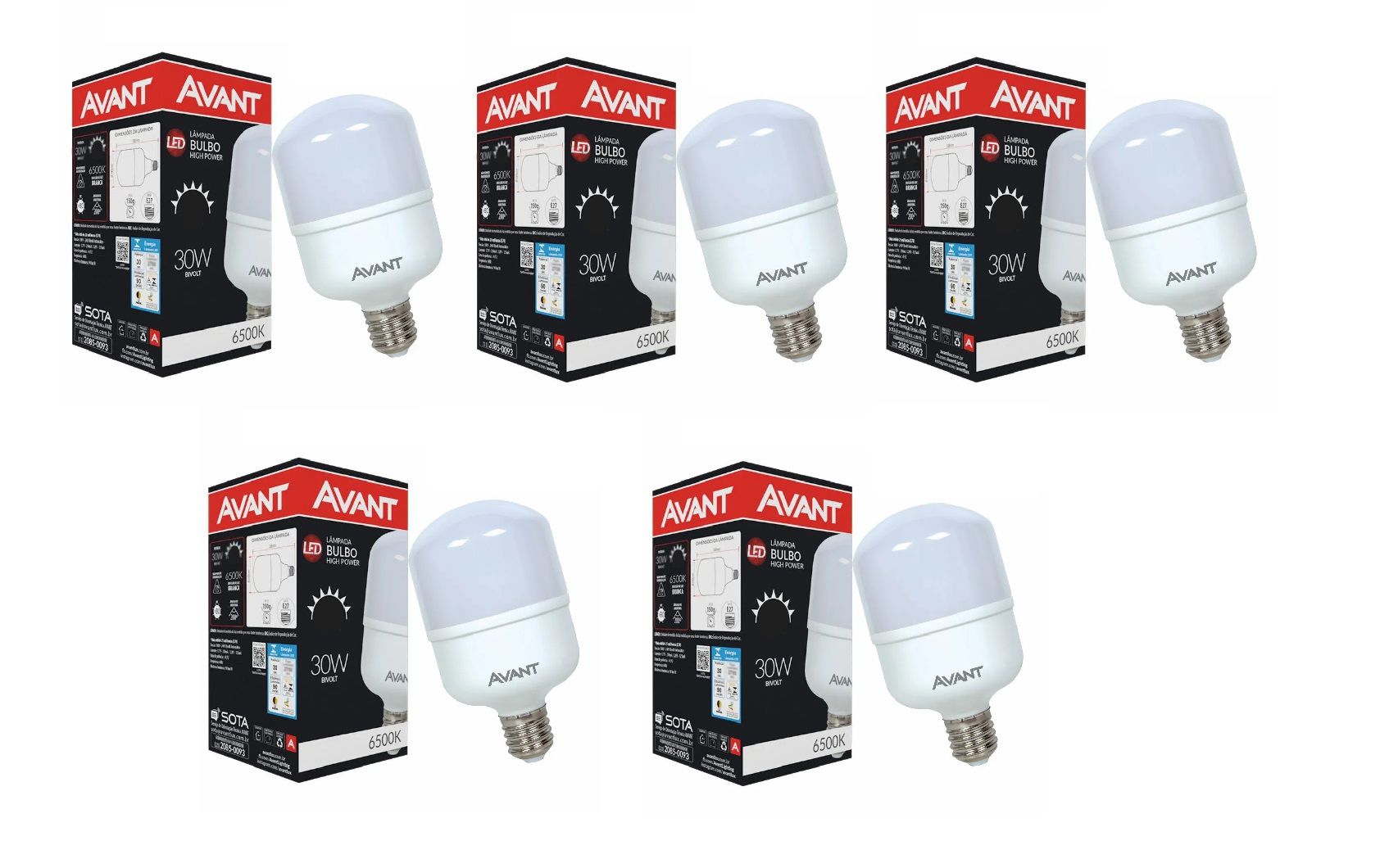 KIT COM 05 LAMPADA LED 30W BIVOLT E27 BRANCO FRIO 6.500K